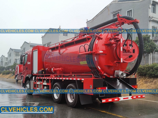 El camión de succión está equipado con una ventana de inspección de nivel y un puerto de autoflujo, un dispositivo de lavado de manos, una válvula antidesbordamiento, una tubería de succión de 8 metros, una apertura hidráulica de la puerta trasera y una bomba de vacío de circulación de agua SK-15. El camión de succión tiene una gran carrera y succión. Además, el tanque cuenta con una función de elevación.