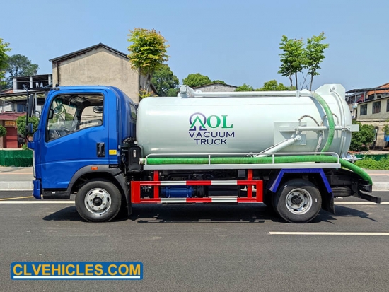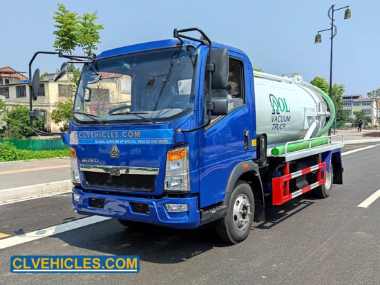 Camión de succión de aguas residuales con tanque de vacío HOWO de 116 HP y 5 CBM