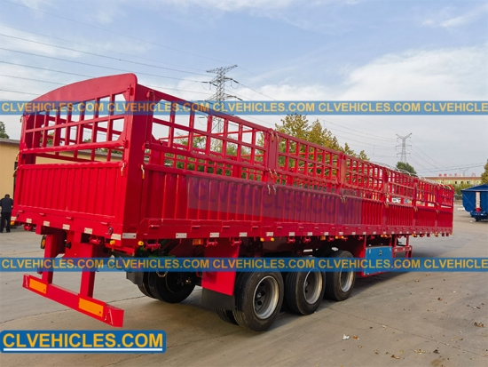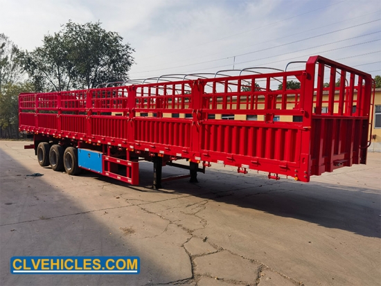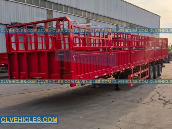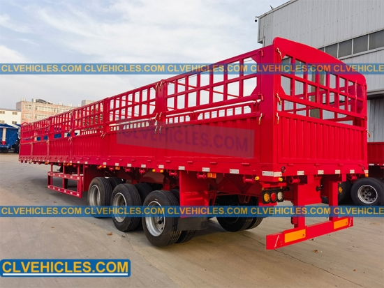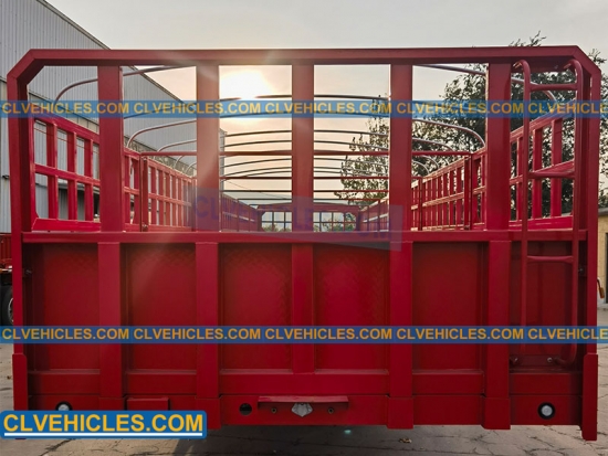 El semirremolque de plataforma con estacas generalmente tiene una plataforma plana rodeada por una valla exterior. Se utiliza ampliamente para transportar animales, bobinas de acero, carbón y otras cargas ligeras y esponjosas.